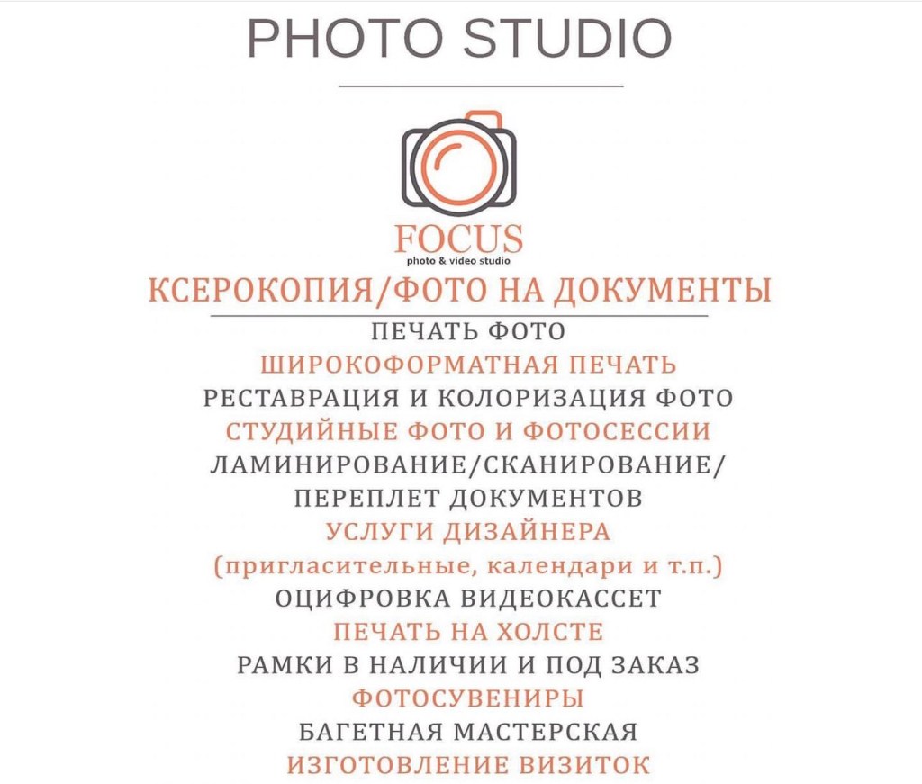 - Фотостудия ФОКУС, пр. Коммунистический, 32А, ТЦ «Западный», 2 этаж, часы работы: 10:00 до 21:00